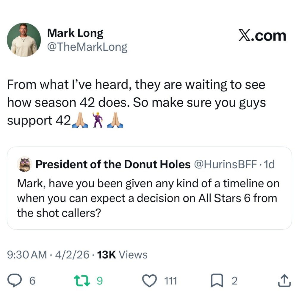 After someone posted an All Stars-related April Fools joke, Mark shared that the series’ future depends on the success of Challenge 42. So, if we want to keep the spinoff alive, we need to show the main series a lot of love, especially as the show (likely) transitions to a new home.